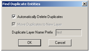 SEARCH FOR DUPLICATES is a new Edit feature. It searches for all entities that are exact copies, and gives a message regarding the search results. Duplicates may be automatically deleted, or moved to another layer.