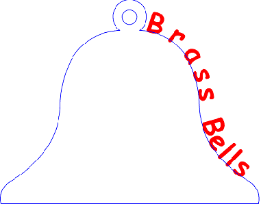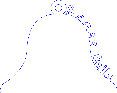 The new Weld Tool attaches objects to other objects creating closed polygons. Here text in a True Type font is shown following the arc of a bell. Using the Weld Tool, it is very simple to weld the text to the bell. Simply convert the text to polylines polylines (using either the Text or “Convert to Polylines” Tool), then use the weld tool to draw a box around the drawing. The result is a closed polygon that contains the words "Brass Bells".