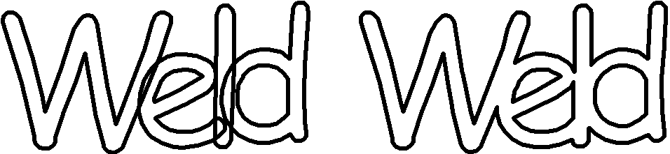 In the following example, the overlapping letters in the word "Weld" are welded together.